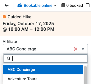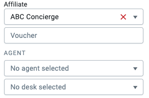 - You can add a specific member of the affiliate’s team to the booking using the Agent dropdown. Agents help track commission owed to the employees of the affiliate you are working with. You can learn more about managing affiliate agents here.