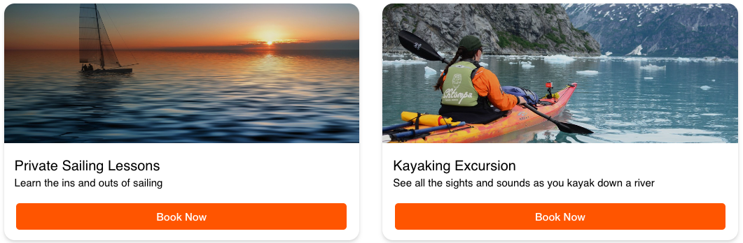 In addition to book buttons you can also use a calendar embed or create a list of activities using our custom embed builder. You can also use our Custom Embed Generator to create a list of activities. With it you can customize color, font size, and order.