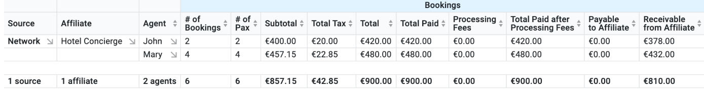 - Each agent will be listed with the number of bookings they made, along with the payable/receivable amounts.