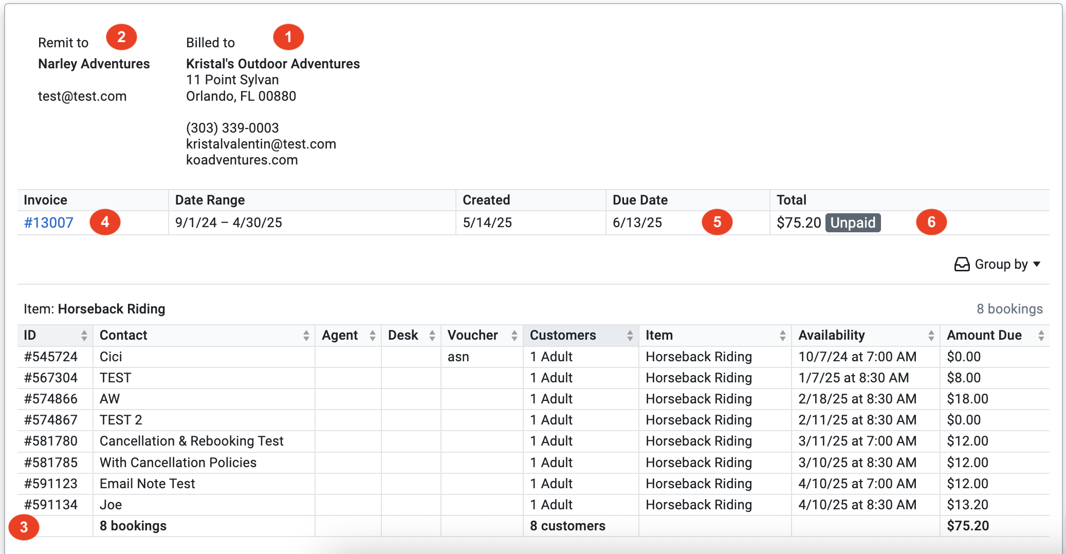 - Due Date: default is 30 days from creation, but may be adjusted by the tour operator.