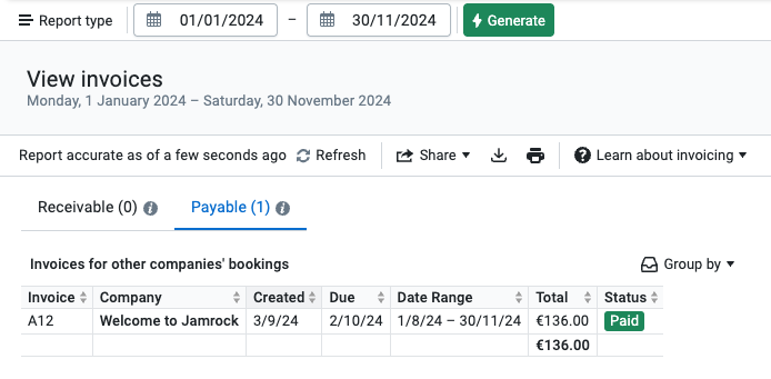 - Payable – invoices where the tour operator owes money to you (the affiliate). In other words, where the tour operator is the Billed to company on the invoice.